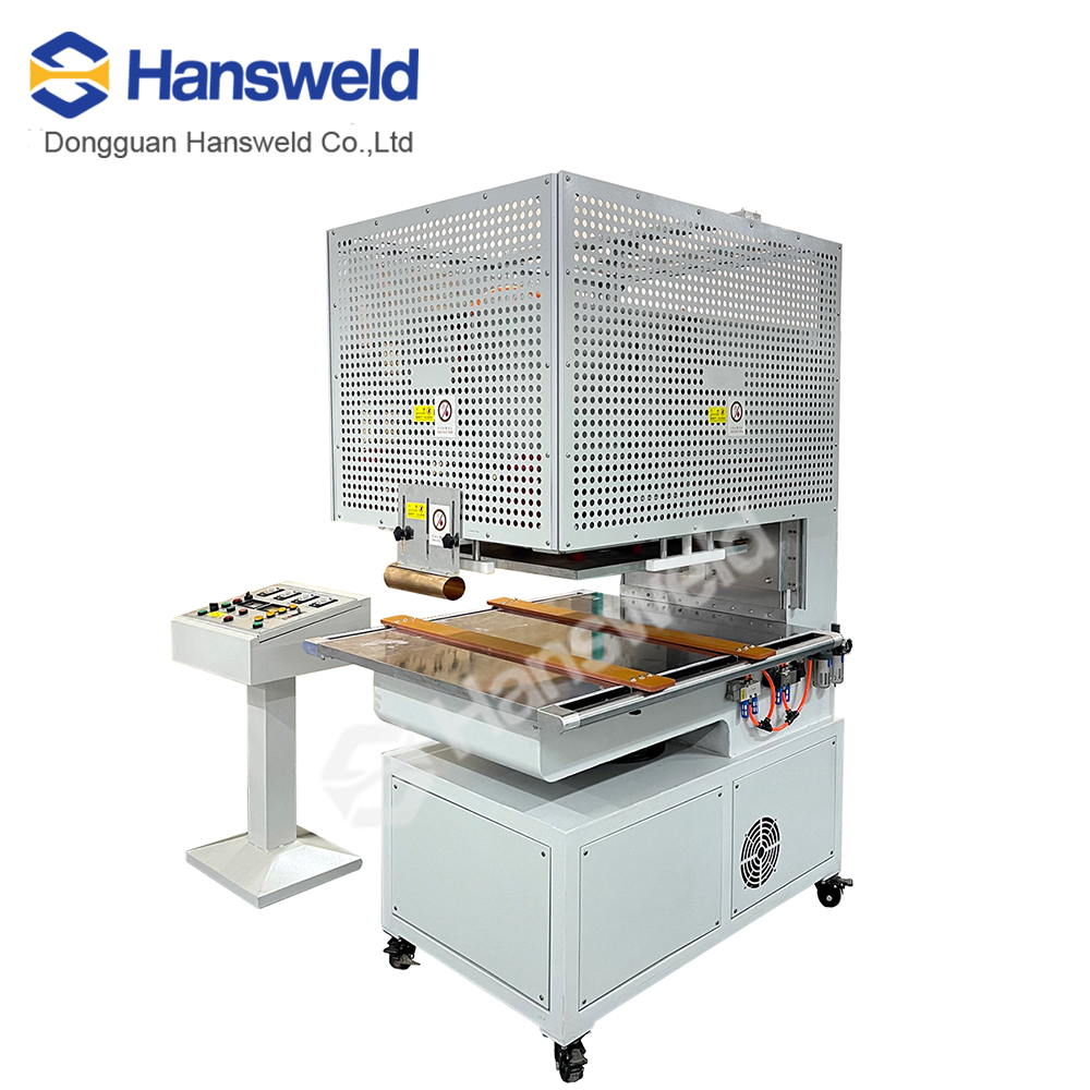 工业皮带档板焊接机,皮带裙边焊接机于输送带的高周波焊接熔接,输送带档板熔接,输送带裙边的熔接,也可用于各种PVC或含PVC10%以上的塑胶产品焊接,接驳。所以又称高周波熔接机,简称高周波机。