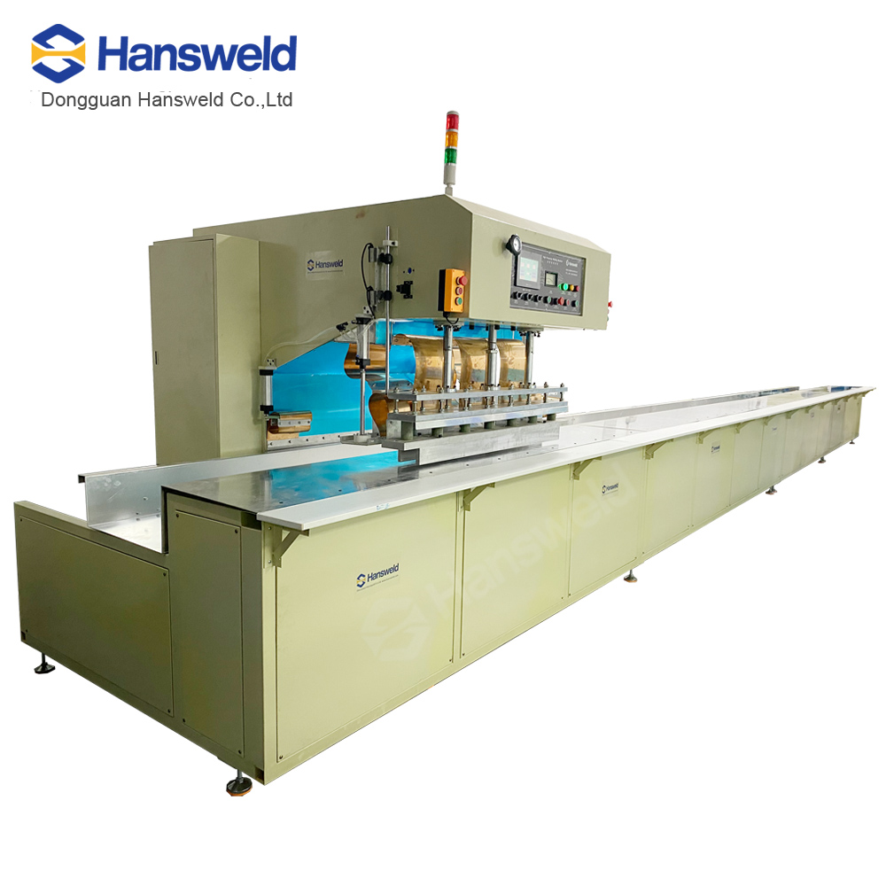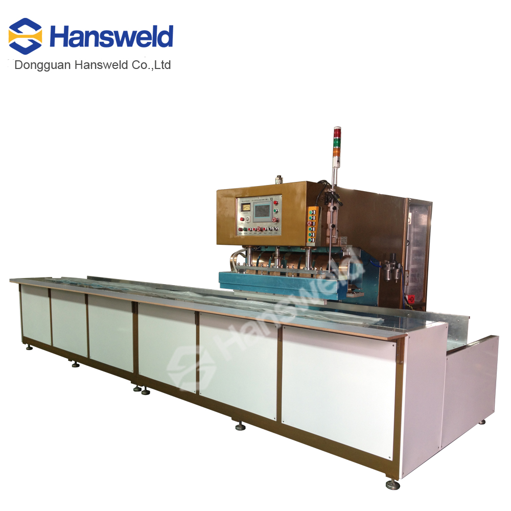 2、可根据用户需要,选择不同高周波功率大小的机器,每次焊接材料的长度及宽度,均可以通过改变高周波模具的尺寸长短宽度,实现膜结构或帆布的自动熔接需要。