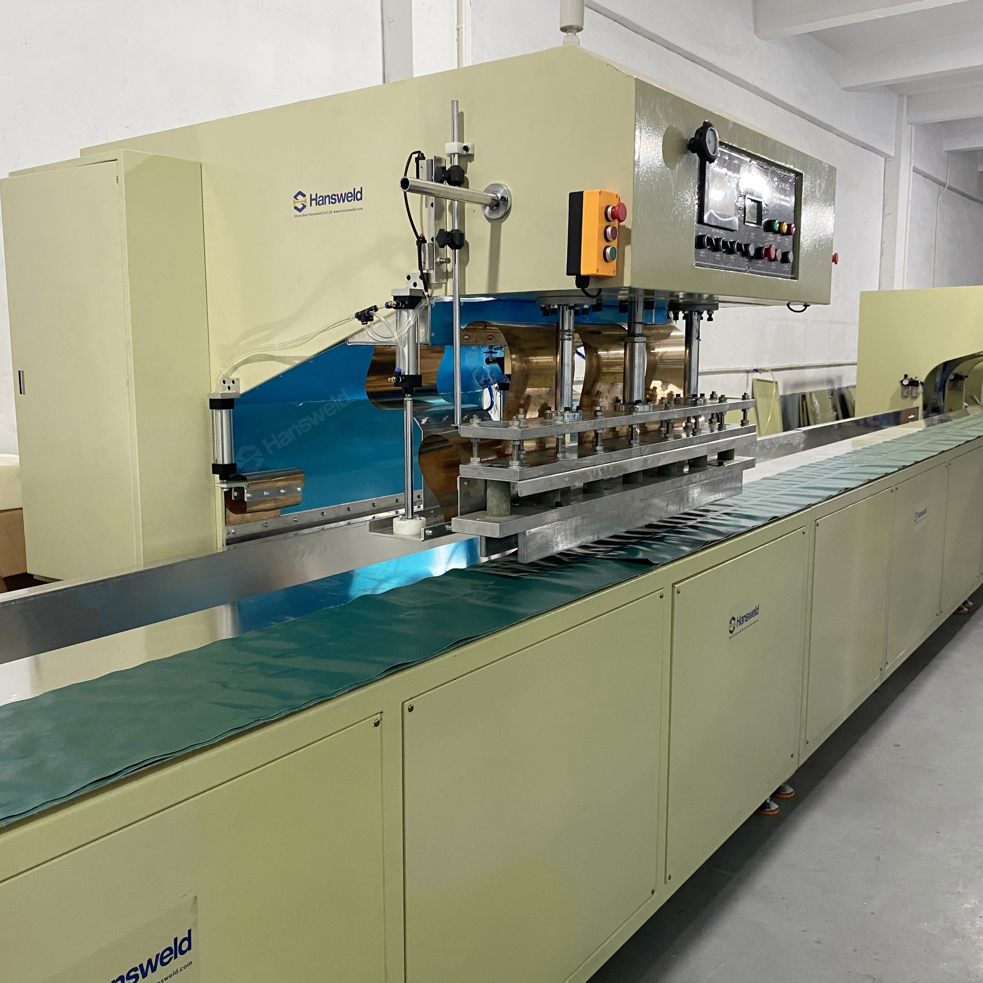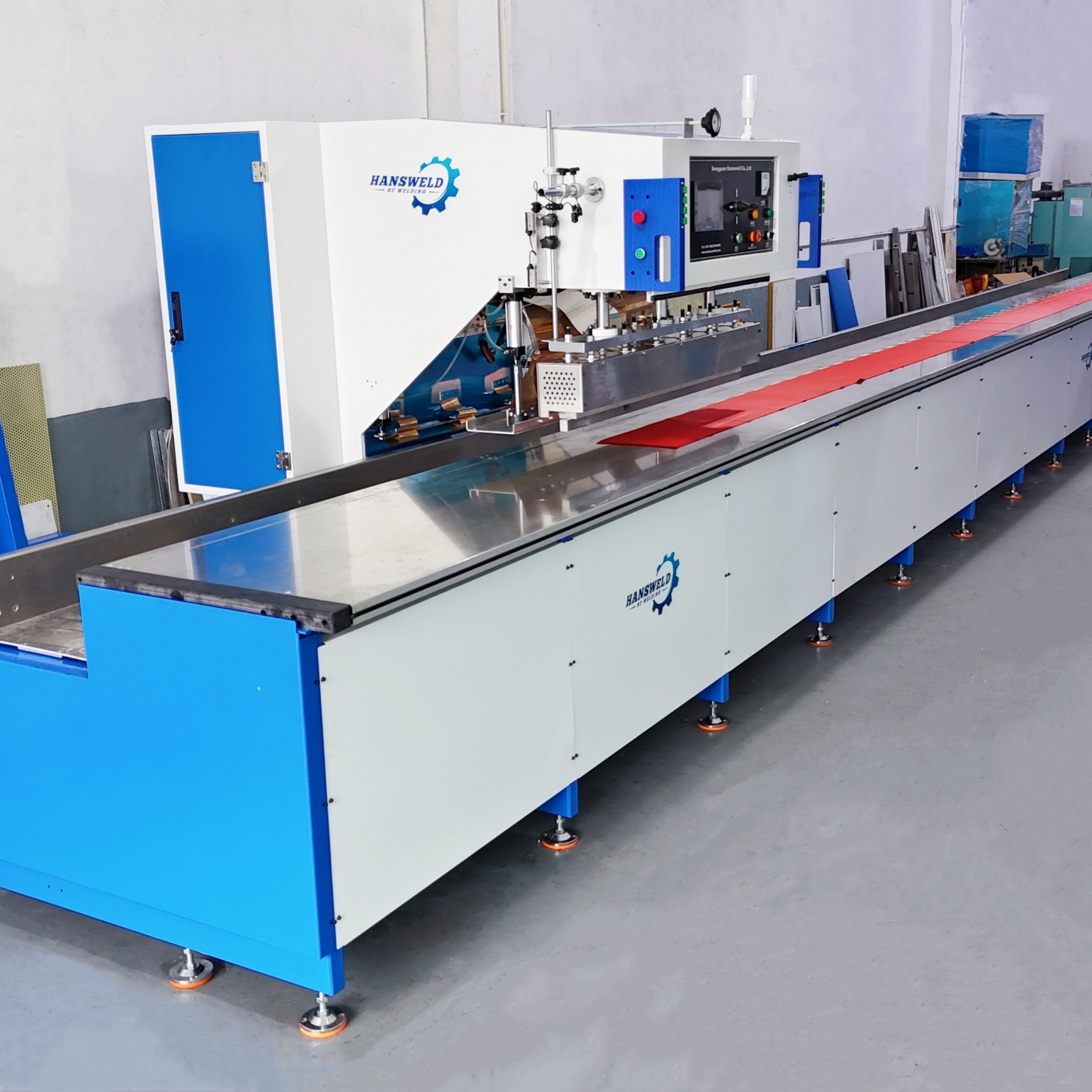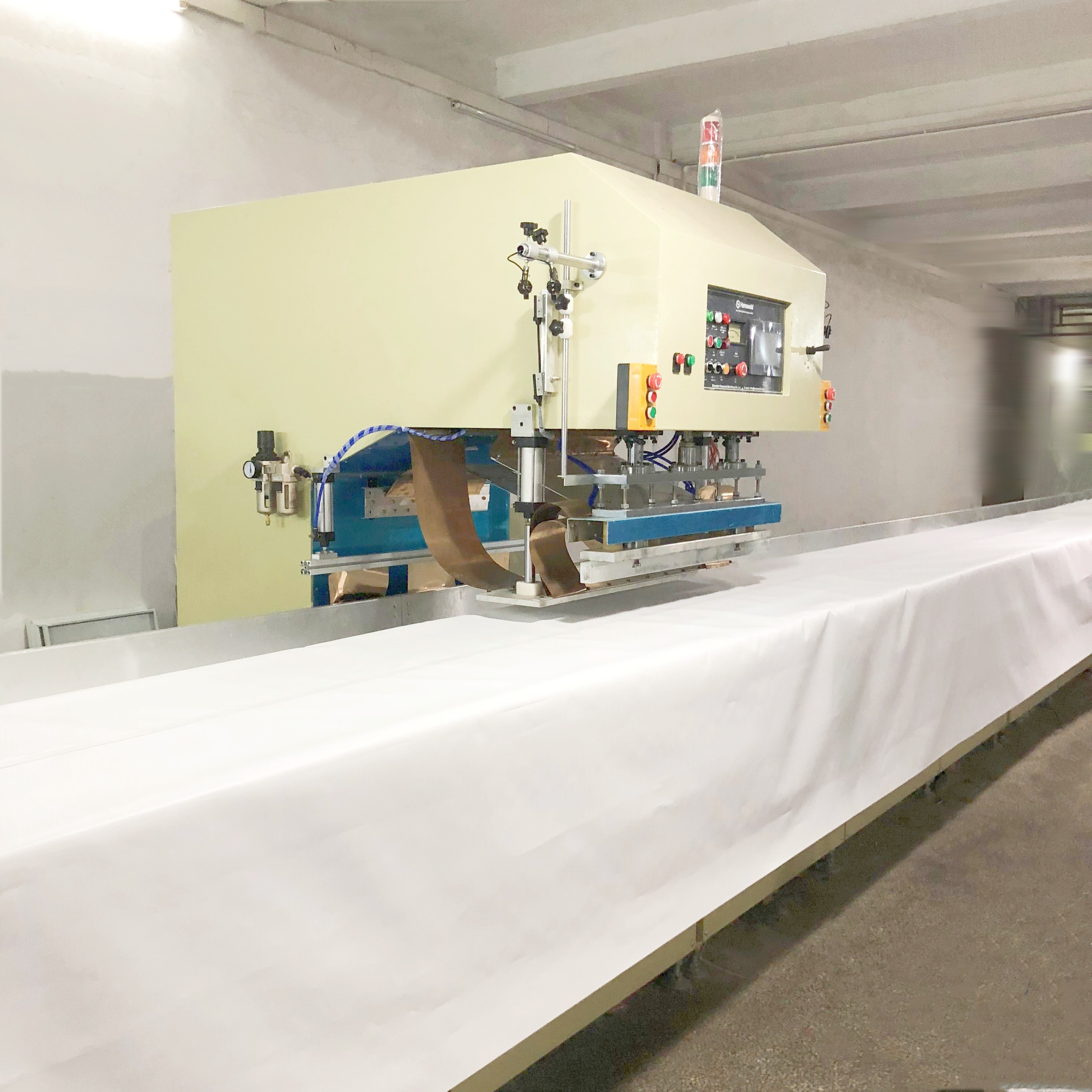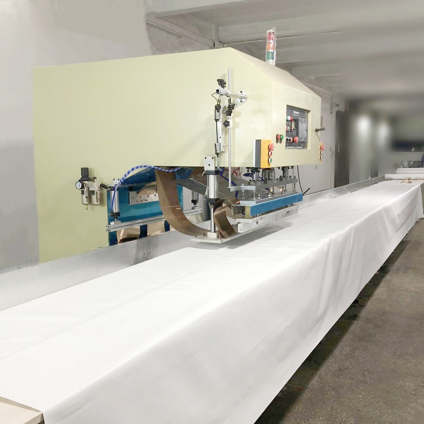 1、采用智能化PLC人机界面操作系统,伺服马达驱动。自动行走,电眼追踪或镭射扫描定位系统,定位精准,无需搬动材料和机器。一条接缝一次性完成,接缝整齐,无皱纹,无刀印。每分钟可达5-10m的焊接速度。
