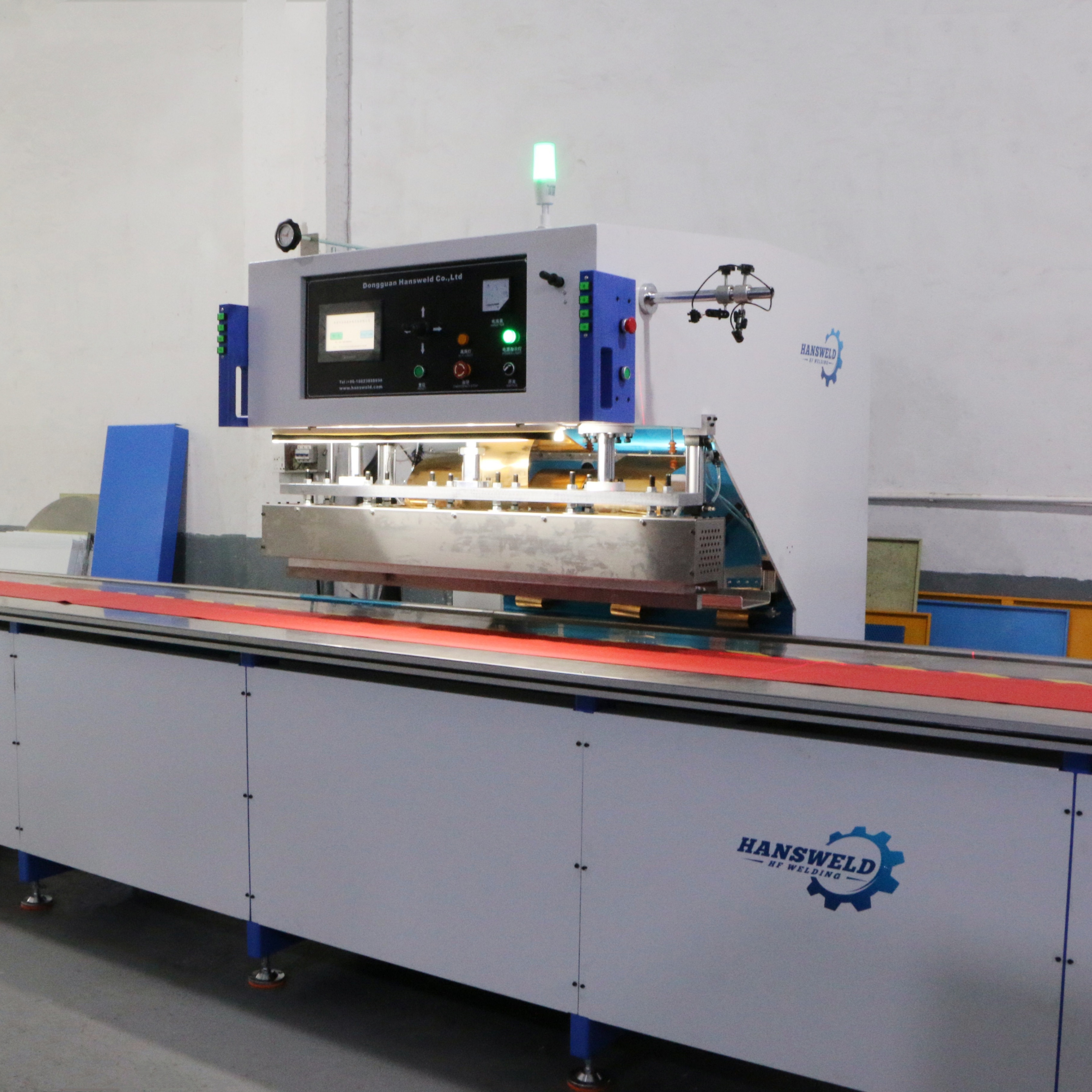 1.高周波行走式帆布机适用于大面积的PVC面料或者PVC涂层面料的热合焊接、拼接等,其中膜结构、帐篷、帆布焊接为最常见产品,包括其他如车篷,集装箱袋等大面积的PVC面料进行高频拼接、高频焊接。