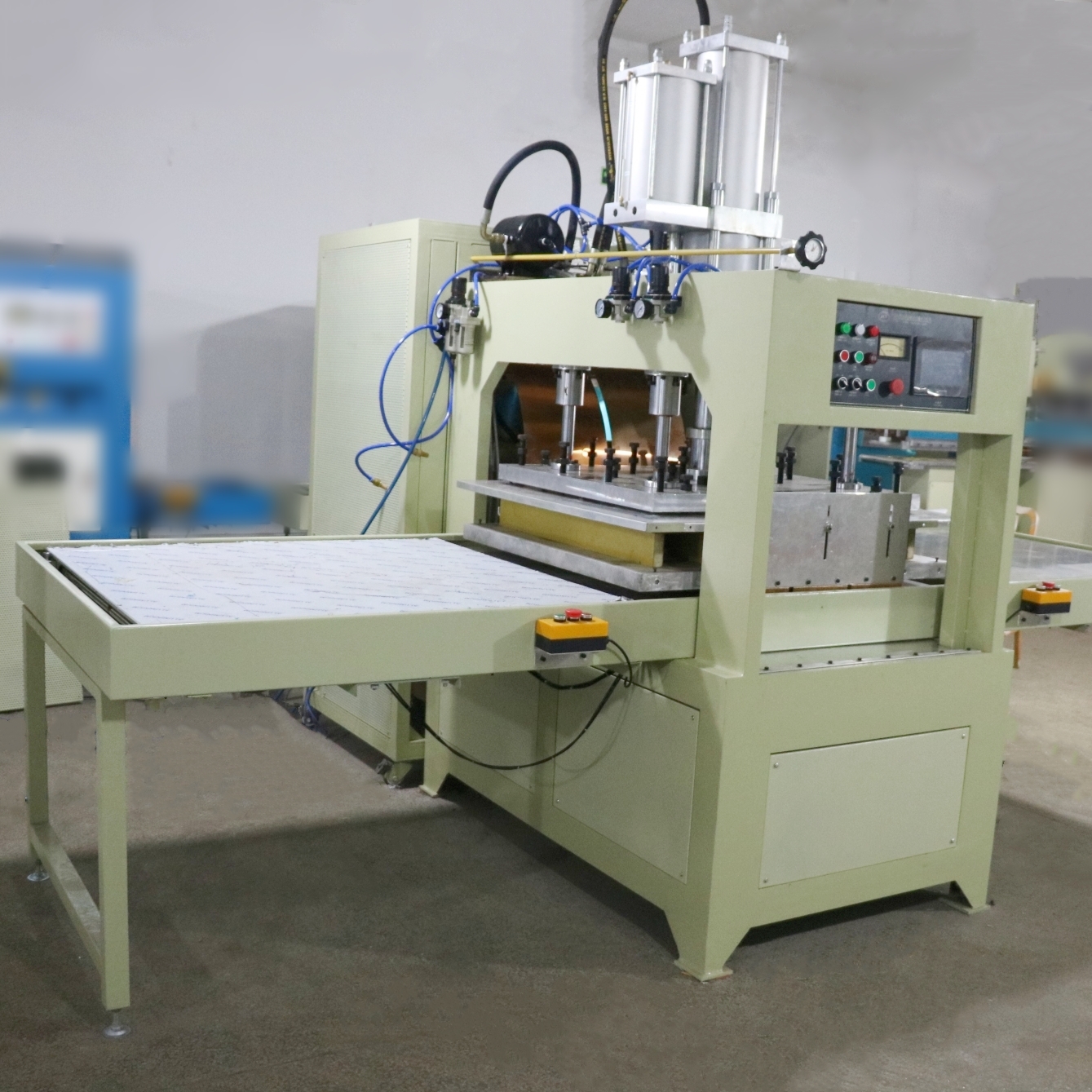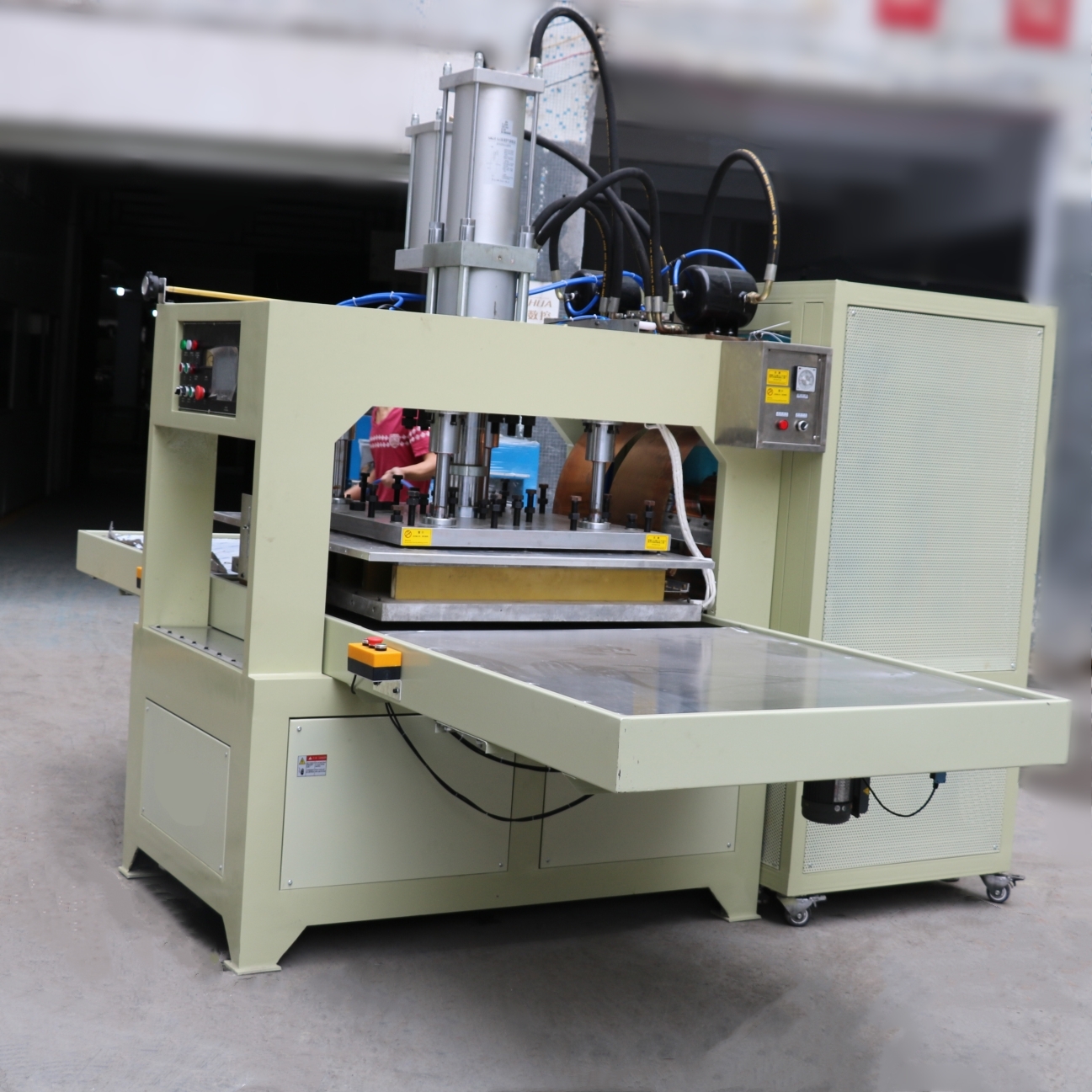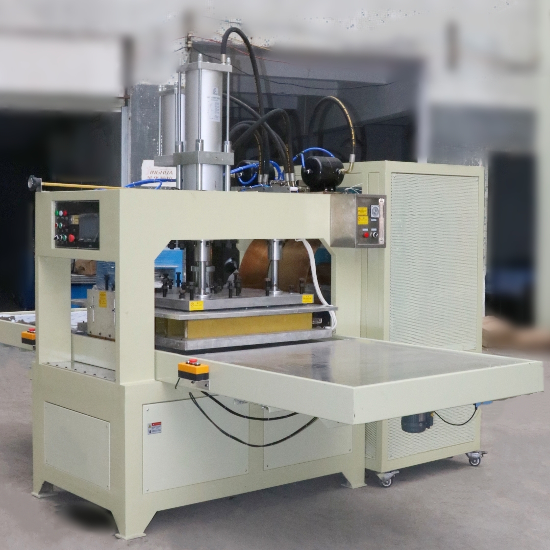 商标、文具、塑料套、充气玩具、鞋类产品、雨衣、皮革制品、便携式软袋及其他纯PVC、TPU、EVA或含有10%以上PVC产品的热加工;各种凹凸形状的图案图案,字母文字压制。