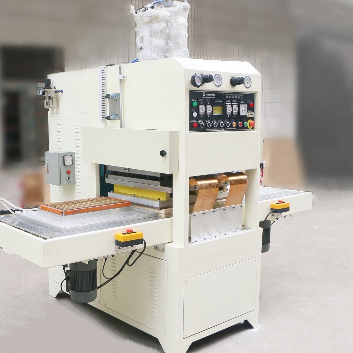 皮革海绵坐垫、复合海绵、海绵植绒布、海绵粉扑热合成型、化妆海绵粉扑高周波熔断机、化妆粉扑高频熔断机、真皮、PU、热水袋、箱包、手机皮套、平板电脑皮套、电脑包、保暖袋等需要熔接又要同步熔断的产品。