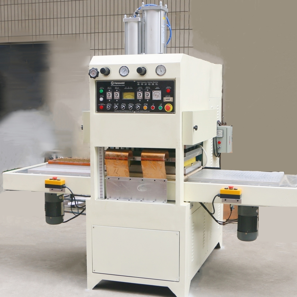 PET、PETG、GAG、EVA、TPU环保材质的焊接同步熔断产品,PETG双面吸塑泡壳的封口熔断、牙刷双泡壳夹纸卡封口熔断,以及EVA等布类皮革、汽车内饰件、汽车通风座椅焊接、海绵头盔、摩托车头盔内衬、