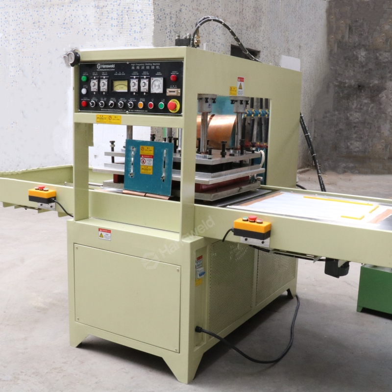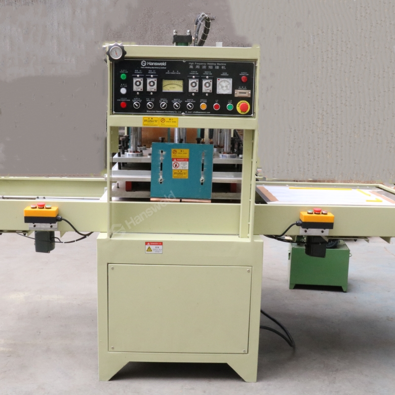 如鞋帽服压花、工艺饰品、充气玩具、气垫床、汽车遮阳板,脚垫,靠垫,汽车油壶,等各种汽车用品、商标、箱包、浴帘、地毯、包装袋、热水袋、医疗用器、文具用品、相册、影集、体育用品、PVC折盒、眼镜盒、帐篷、机车坐垫、工具、电子、电器的吸塑盒真空包装封口等。